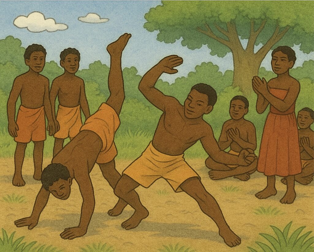 Capoeira ist eine Kampfkunst, die in Brasilien während der Kolonialzeit von verschleppten Sklaven aus verschiedenen Regionen Afrikas im 17. Jahrhundert als Widerstandskampf entwickelt wurde. Capoeira vereinte Angriffstechniken mit tänzerischen Elementen und rhythmischer Musik, um den Kampf als Tanz zu tarnen. Sie half den Sklaven sich gegen ihre Aufseher zu Wehr zu setzen und dem tristen Sklavenalltag für einige Minuten zu entfliehen. Durch die Capoeira schulten sich viele Sklaven im Nahkampf, was ihnen half, Aufstände anzuzetteln und zu fliehen.