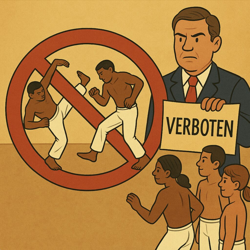 Da die portugiesischen Eroberer die Gefahr, die ihnen durch die Capoeira drohte, erkannten, wurde Capoeira 1890 per Gesetz verboten und lediglich als verbotene Straßenkampftechnik im Untergrund praktiziert. Als 1934 die überwachte Ausübung von Capoeira erlaubt wurde, gründete Manoel dos Reis Machado, auch Mestre Bimba genannt, die erste Academia de Capoeira. 1937 wurde das Verbot der Capoeira endgültig aufgehoben. Heutzutage wird zwischen verschiedenen Richtungen von Capoeira unterschieden, zum Beispiel in das traditionellere Capoeira Angola (gefördert durch Mestre Pastinha) und Capoeira Regional (gefördert durch Mestre Bimba). Die afrikanischen Elemente verschmolzen im Capoeira Regional im Laufe der Jahre zusätzlich mit Einflüssen anderer Kampfkünste, sodass dieser Stil kämpferischer wurde. Das kontaktlose Spiel und die Grundeigenschaften von Kreativität, Improvisation und Anpassungsfähigkeit blieben aber nach wie vor erhalten. Mestre Camisa, Schüler von Mestre Bimba, entwickelte auf der Basis von Capoeira Regional den Stil von Abadá-Capoeira.